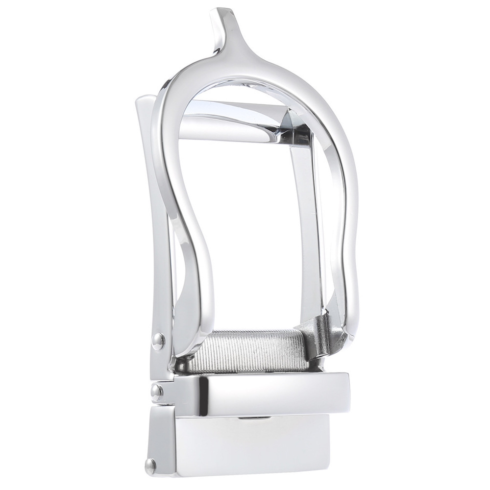 Automatická kovová pracka vyrobená z vysokokvalitnej zliatiny, ktorá zaisťuje bezpečné uchytenie a dlhú životnosť. Pracka si zachová svoj vzhľad a funkciu po celé roky a predstavuje spoľahlivý doplnok ku každému outfitu. Túto pracku môžete použiť jedine ku remeňom bez dierok, ktoré majú zo zadnej strany všitý track systém, ktorý vám umožňuje utiahnúť si opasok s presnosťou na 0,5cm a je nastaviteľnejší ako štandarný klasický opasok s dierkami.