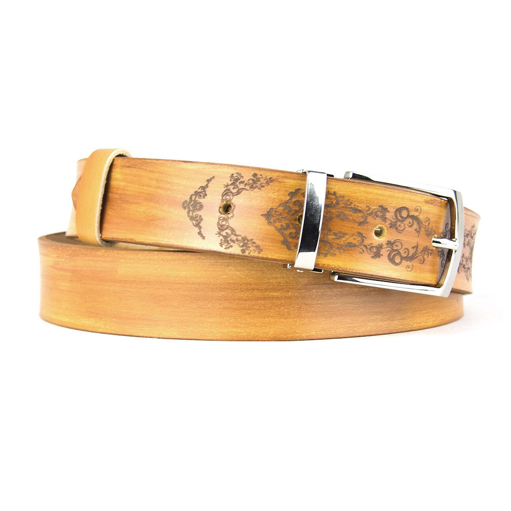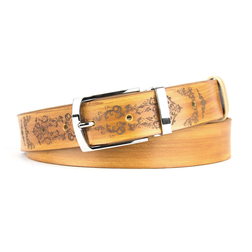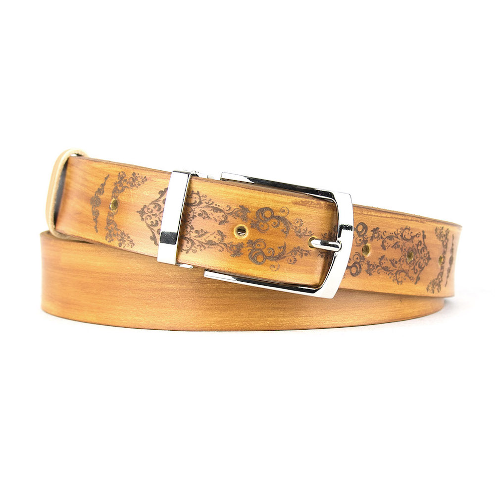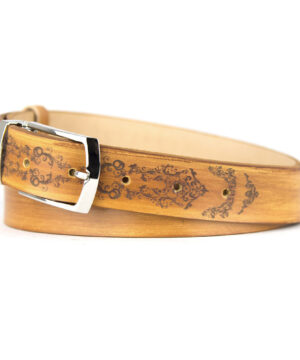 Gravírovaný a ručne maľovaný kožený opasok vyrobený na Slovensku