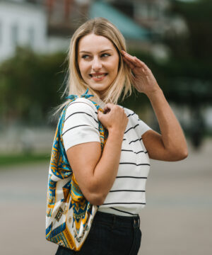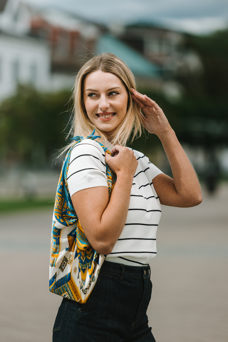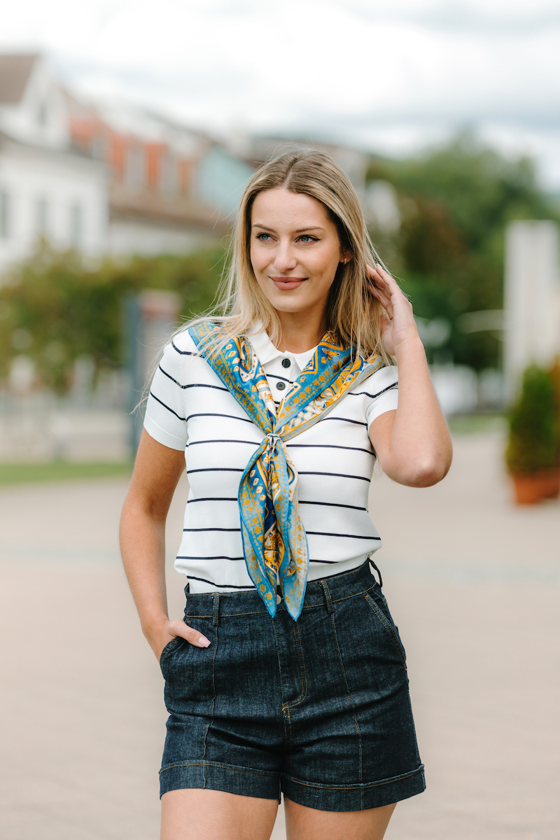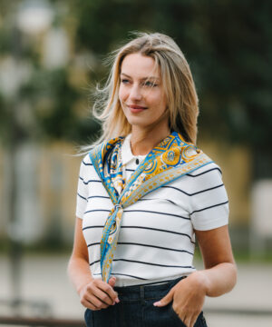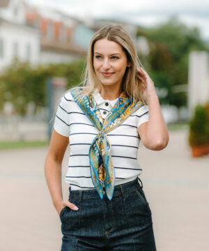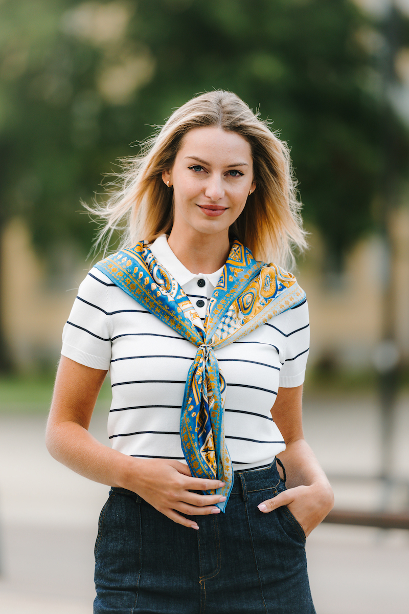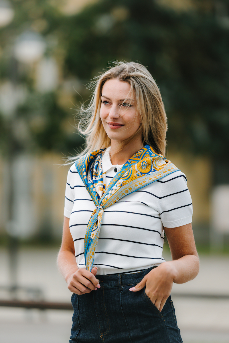 -klasická šatka okolo krku – vďaka vlastnostiam hodvábu je vhodné nosenie celoročne