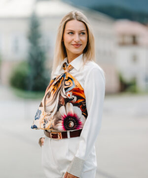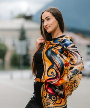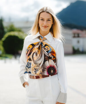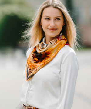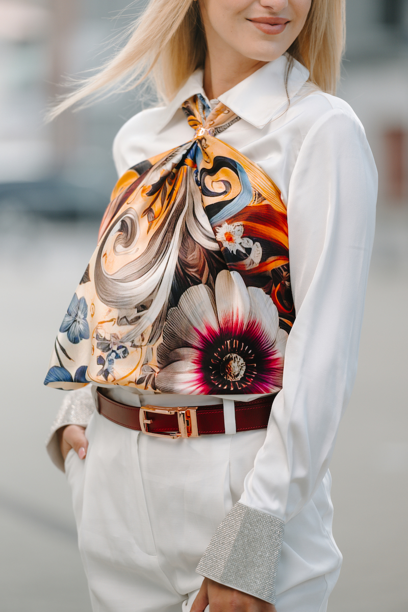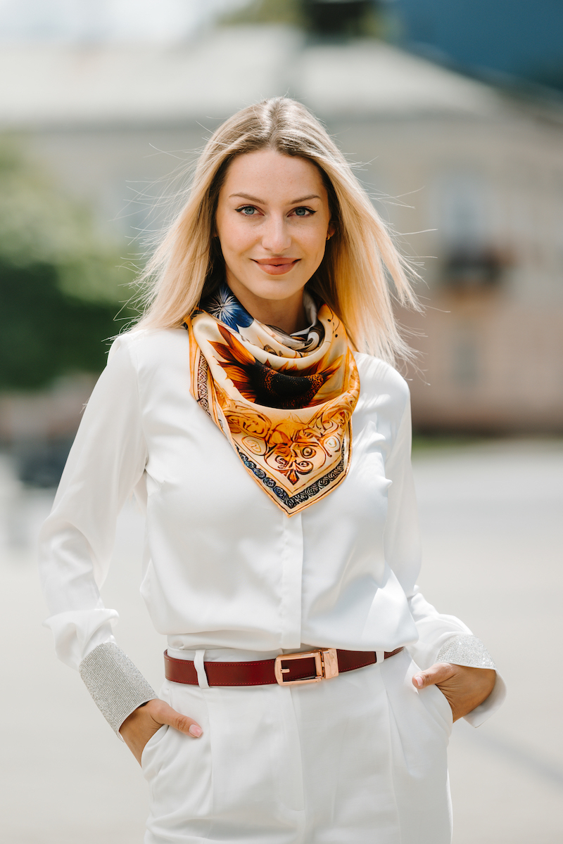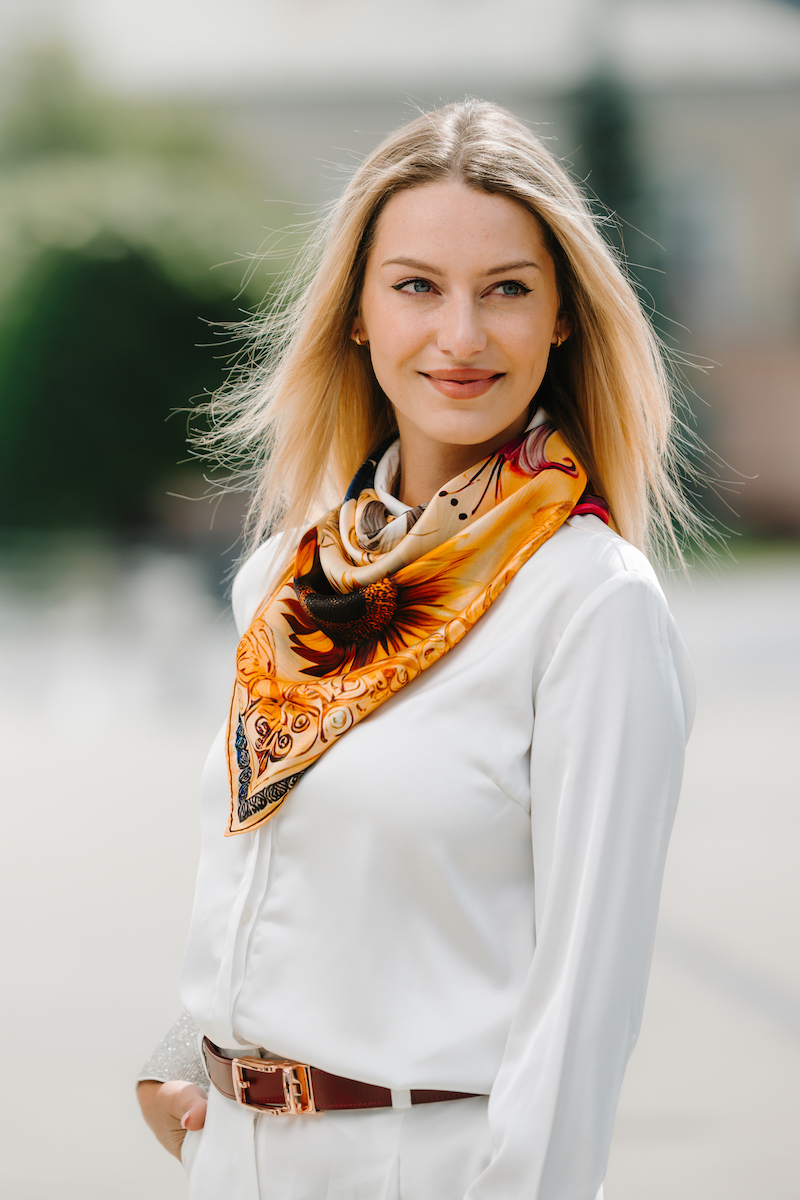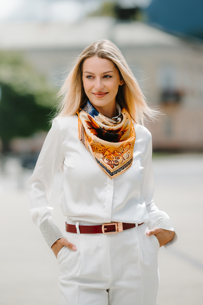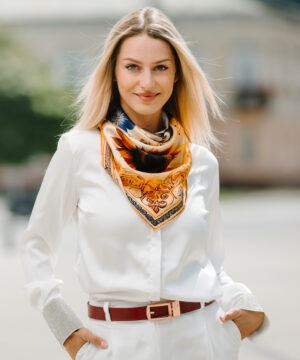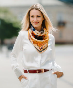 -klasická šatka okolo krku – vďaka vlastnostiam hodvábu je vhodné nosenie celoročne