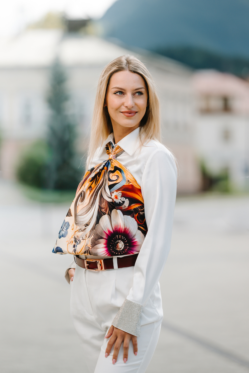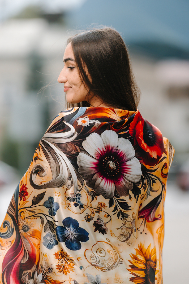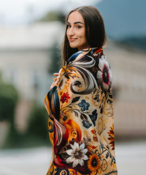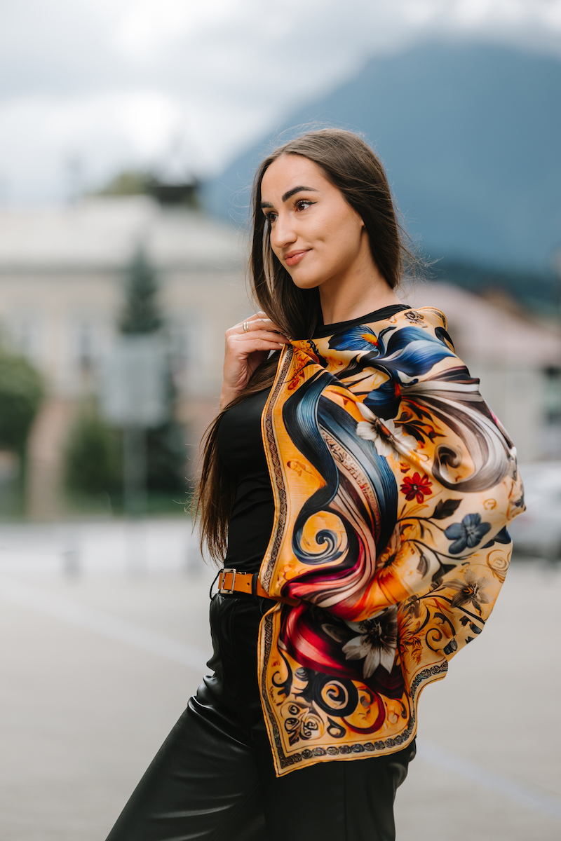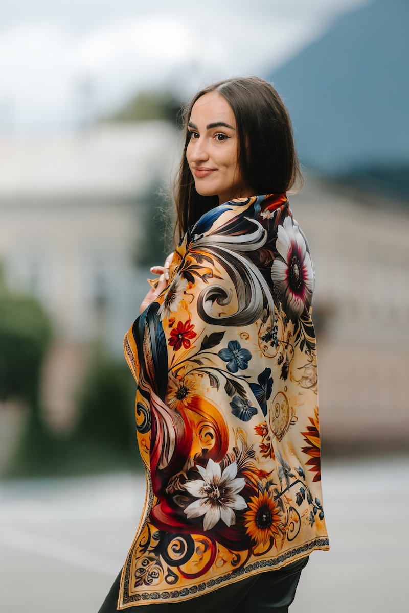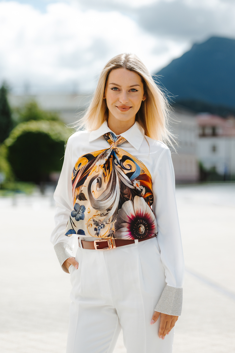 -klasická šatka okolo krku – vďaka vlastnostiam hodvábu je vhodné nosenie celoročne