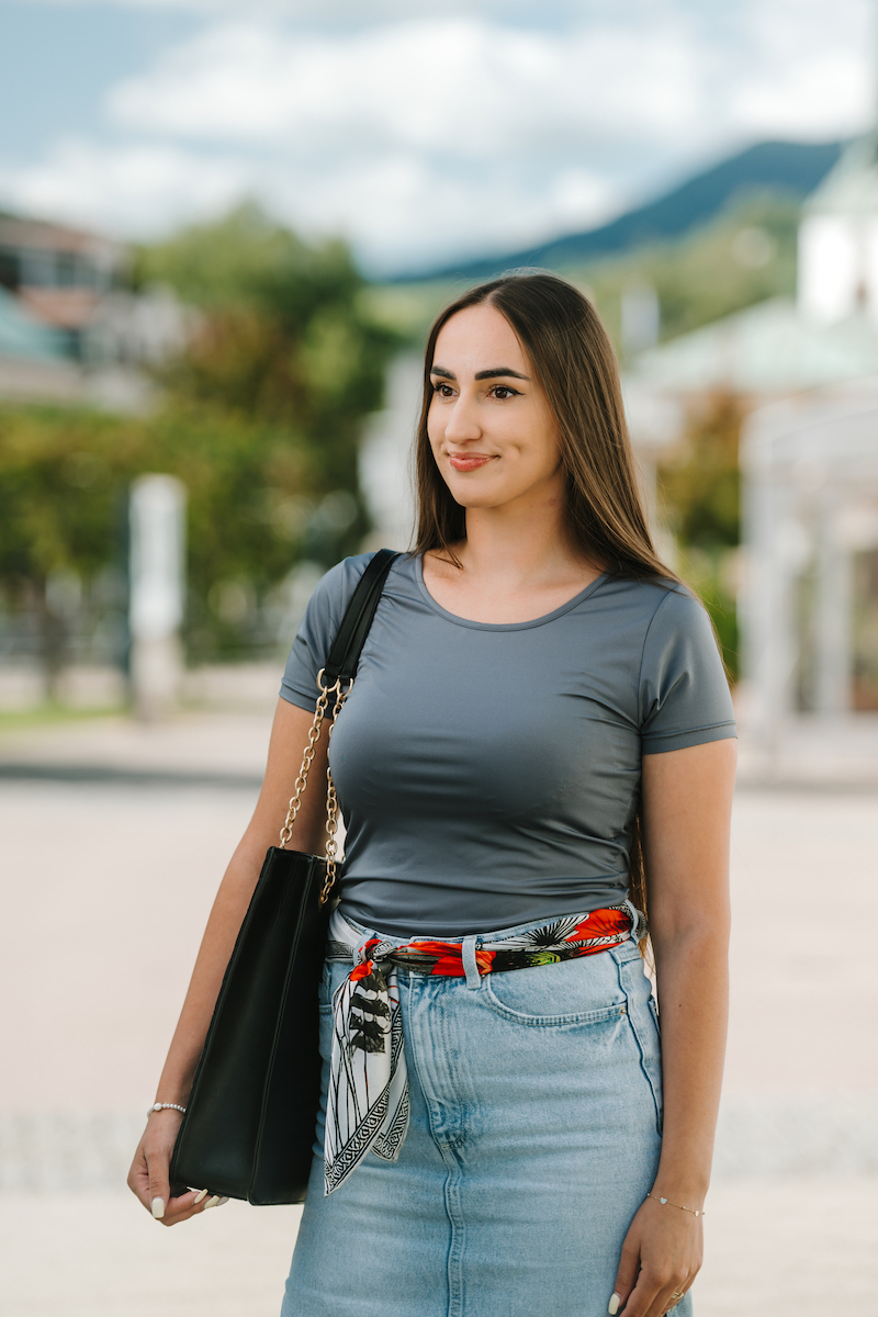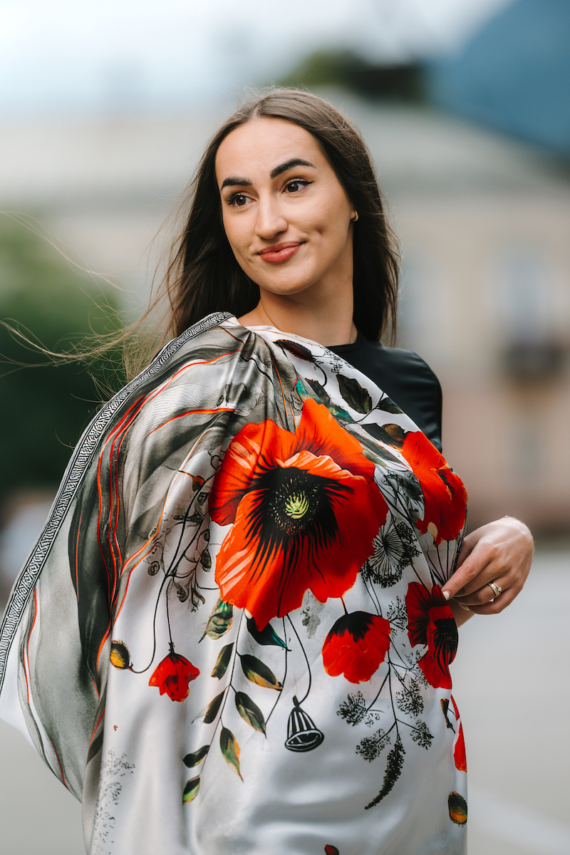 -klasická šatka okolo krku – vďaka vlastnostiam hodvábu je vhodné nosenie celoročne