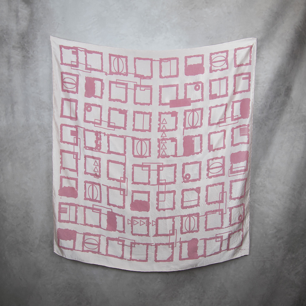 Ručná potlač motívu sieťotlačovou technikou farbami určenými na hodváb, ktoré zaručia farebnú sýtosť z oboch strán.