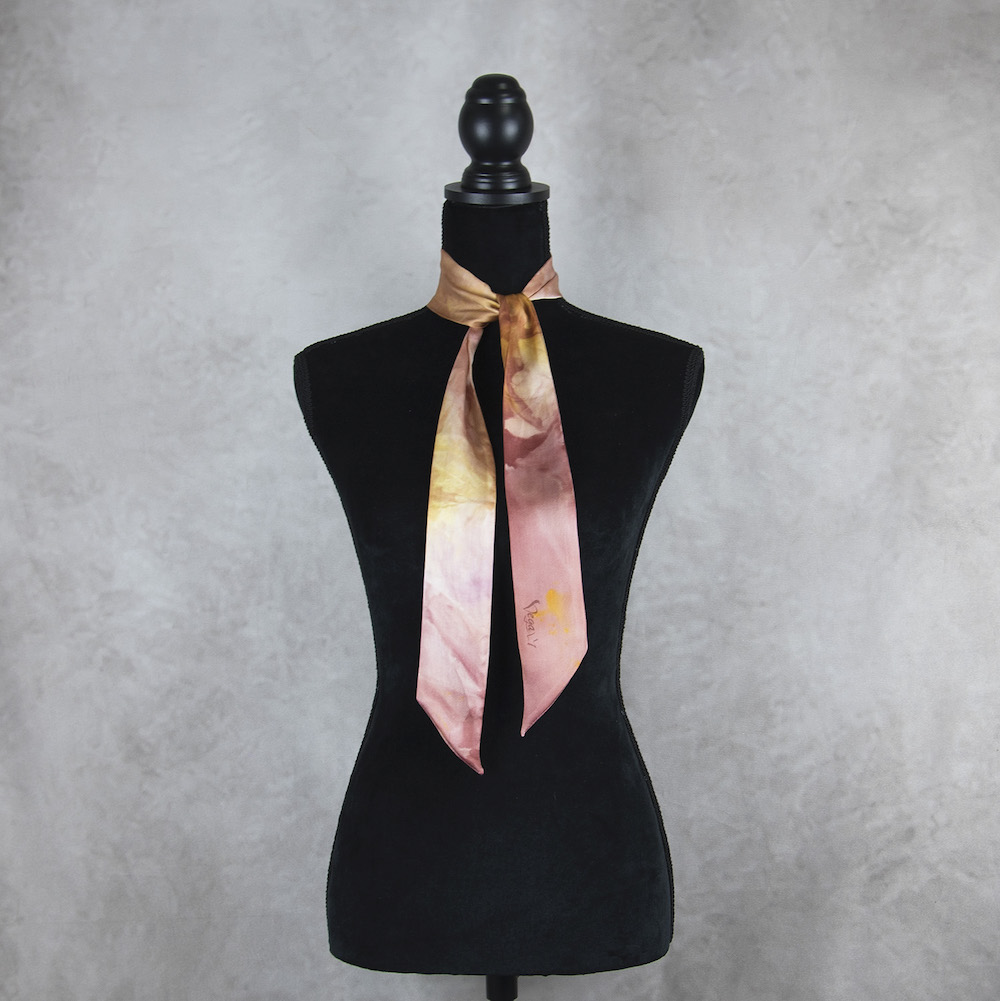 Sme tak nadšení, že vám môžeme predstaviť túto limitovanú edíciu, mimoriadne krásnych, elegantných hodvábnych šatiek. Je to perfektný módny doplnok na vnesenie osobného charakteru do vášho každodenného oblečenia. Môžete ju nosiť okolo krku, aby vás zahriala, uviazať si ju do vlasov a vytvoriť jednoduchý chvost alebo ako čelenku. Používame kvalitný prírodný hodváb, ktorý kedysi nosili kráľovské rodiny v starej Číne. Tento veľmi špeciálny materiál je vyrobený zložitou starodávnou technikou a lem je starostlivo ručne šitý profesionálnymi remeselníkmi. Je obojstranne zafarbený prirodzene, šetrný k citlivej pokožke, udržateľný a stálofarebný.