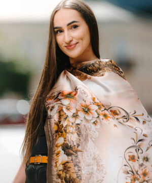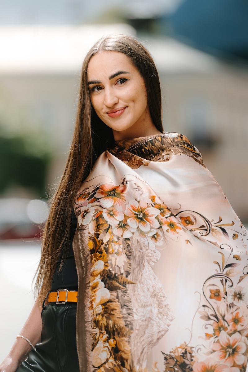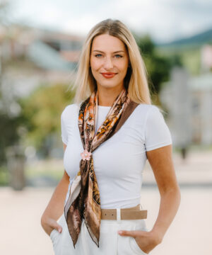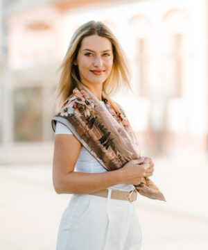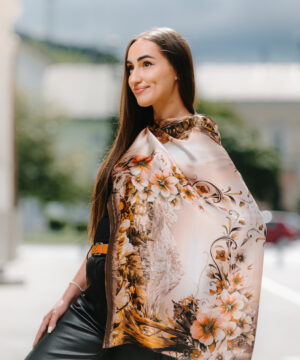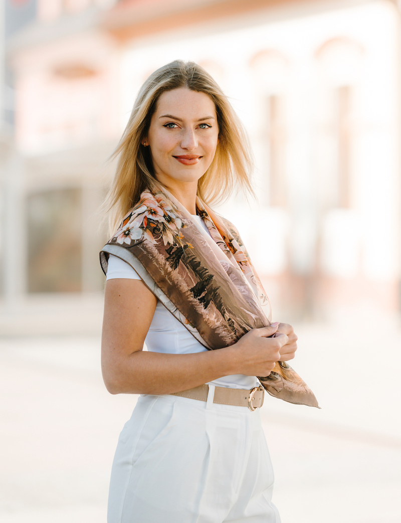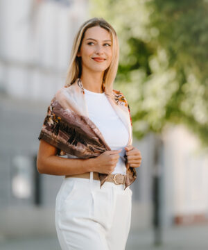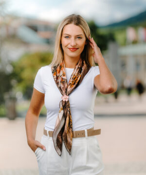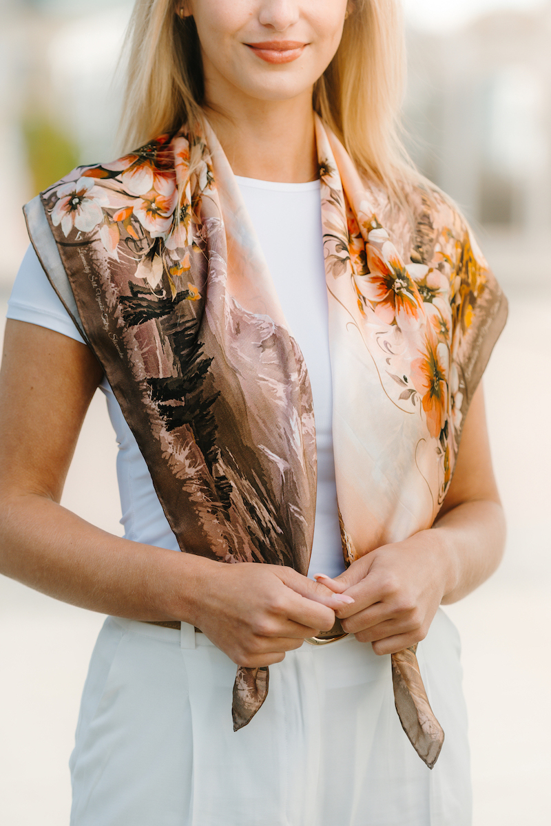 -klasická šatka okolo krku – vďaka vlastnostiam hodvábu je vhodné nosenie celoročne