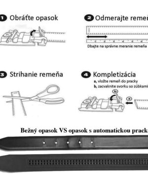 Opasky s automatickou prackou sú pohodlnou alternatívou k tradičným opaskom. Automatický opasok nemá diery, ale má račňový mechanizmus pracky, ktorý umožňuje jednoduché a bezproblémové zapínanie. Opasok jednoducho zasuniete do pracky pre požadované uchytenie a pomocou spony ho odopnete. Tento typ nastaviteľných opaskov má systém koľajníc a ponúka mobilné pohodlie a štýlový dizajn.