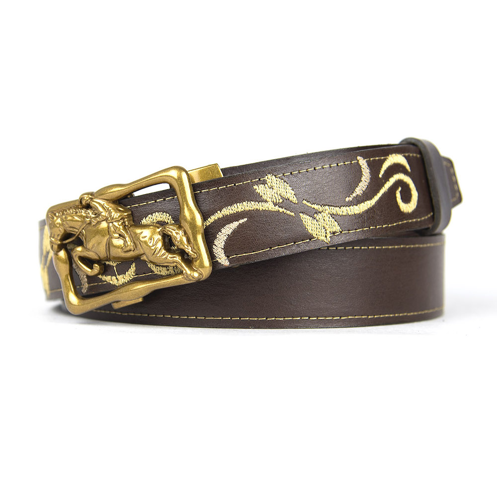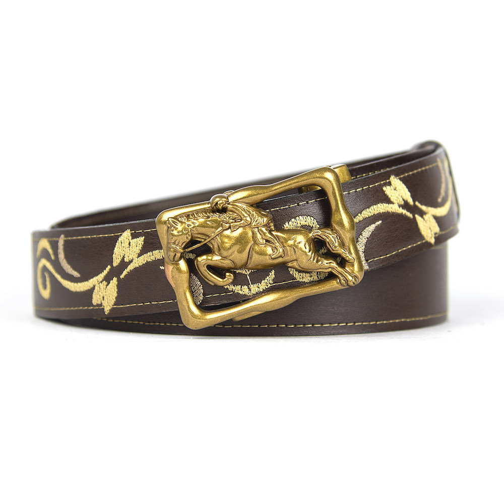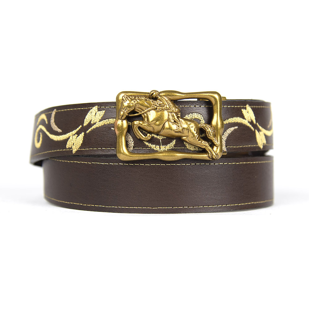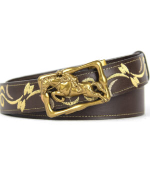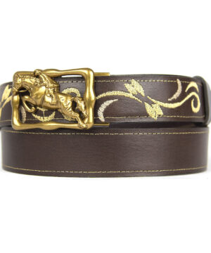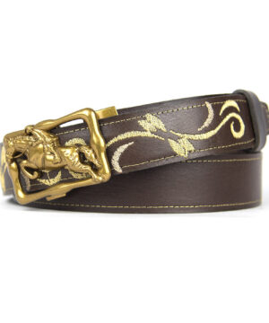 Kožený opasok s výšivkou, automatická pracka, 137cm, Limitovaná edícia 06