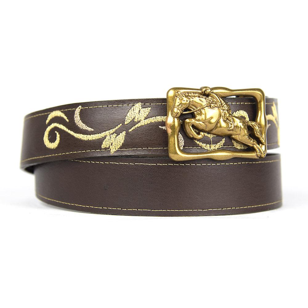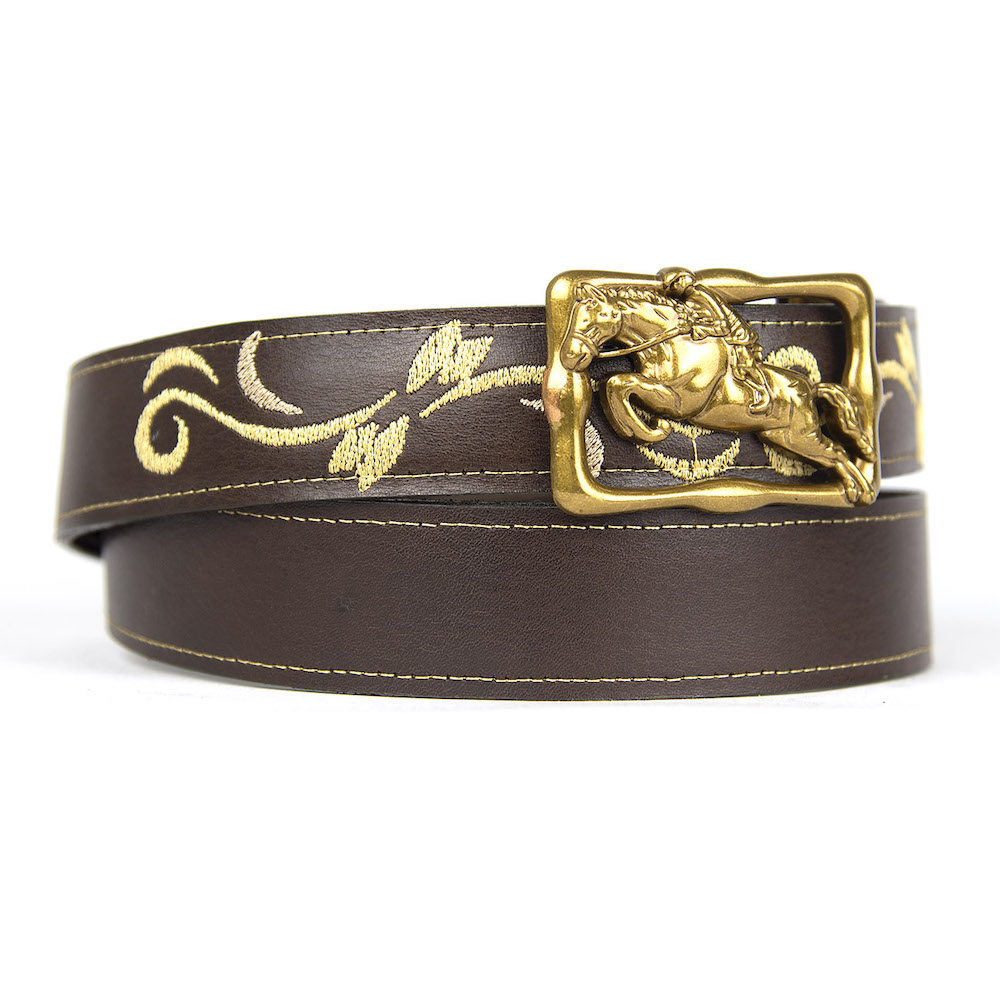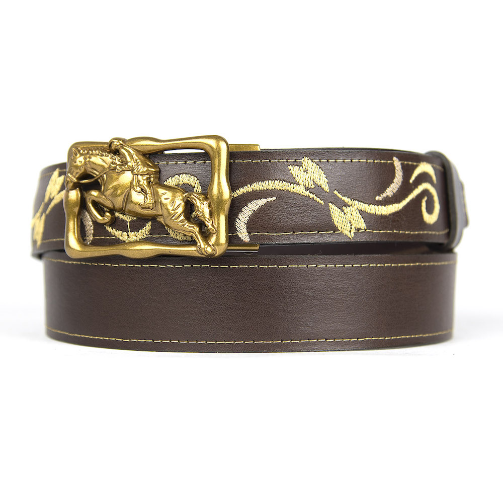 Kožený opasok s výšivkou, automatická pracka, 137cm, Limitovaná edícia 06