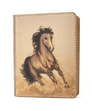 Kožený zápisník je vyrobený z pravej prírodnej hovädzej kože. Postupne je v rukách umelca koža opracovávaná niekoľkými druhmi nástrojov. Od prvotnej kresby a idei sa tak pomocou nožov, dlát, kladiva a podobne pretvorí klasický plochý kožený povrch na jemne plastické a reliéfne umelecké dielo. Následne sa dielo ručne namaľuje farbami určenými špeciálne na použitie na koži. Vďaka tomu farba vsiakne hlboko do kože, neotiera sa a aj pri poškodení či poškriabaní je farba stále viditeľná a celistvá. Koža je pevná a drží svoj tvar. Následné je zápisník ošetrený priehľadným lakom, ktorý chráni materiál pred bežným mechanickým poškodením a premočením. Zápisník z prírodnej kože je svojou veľkosťou vhodný do každej pánskej alebo dámskej tašky.