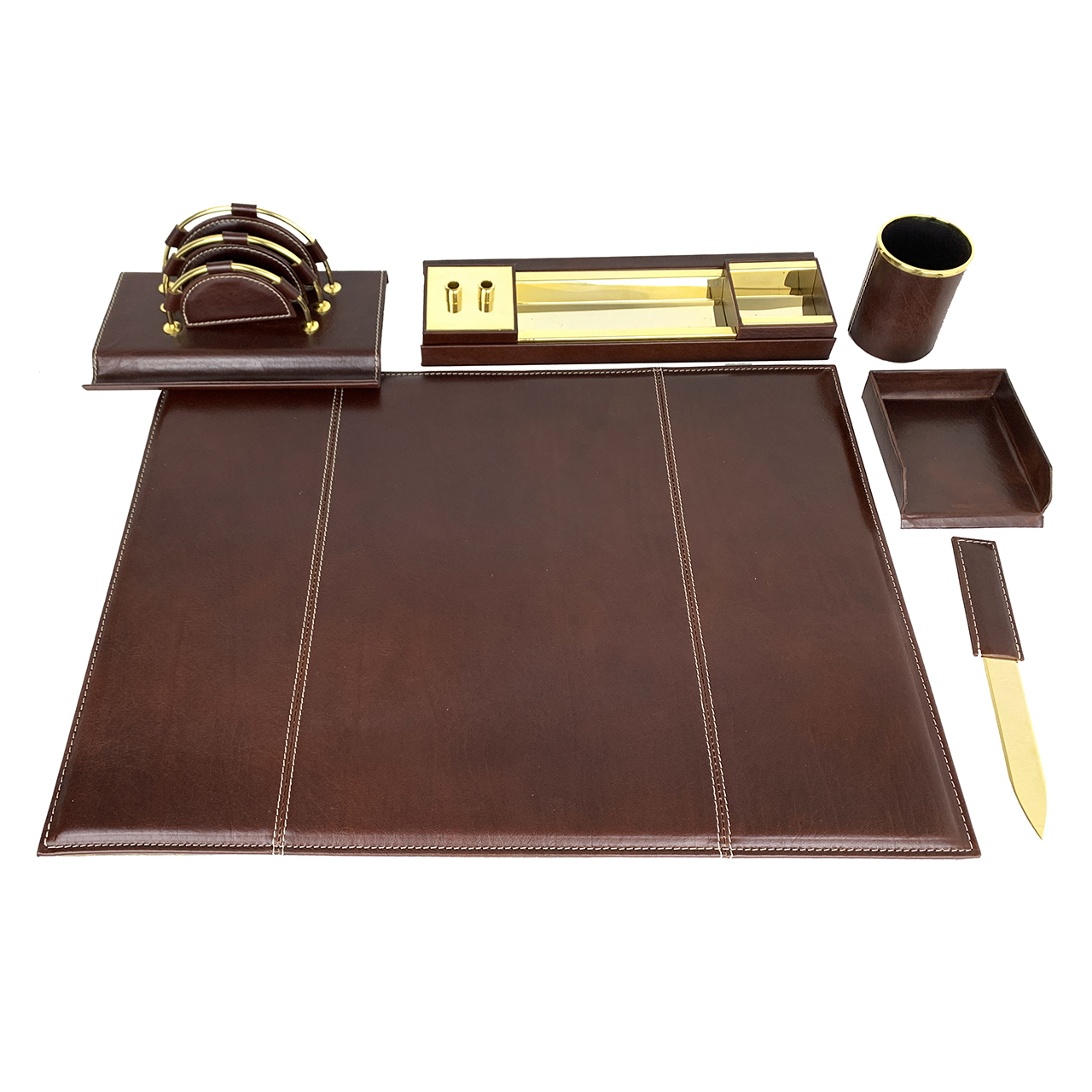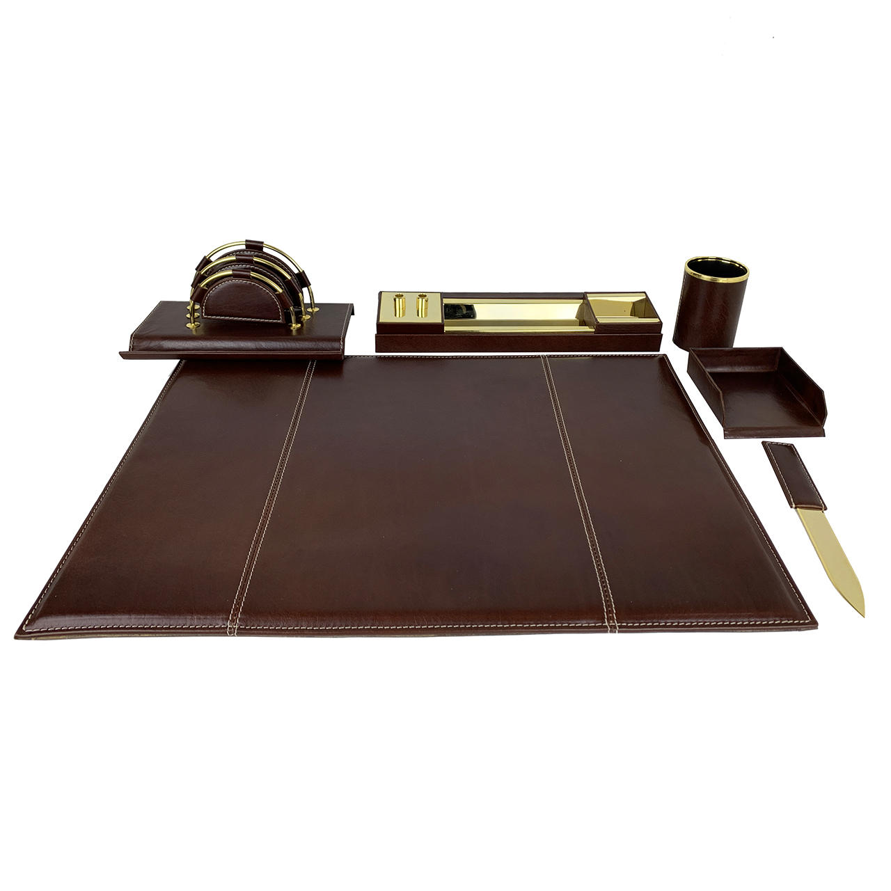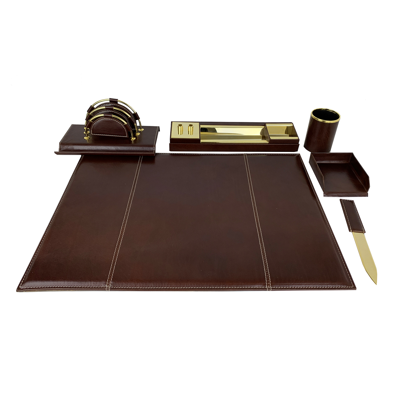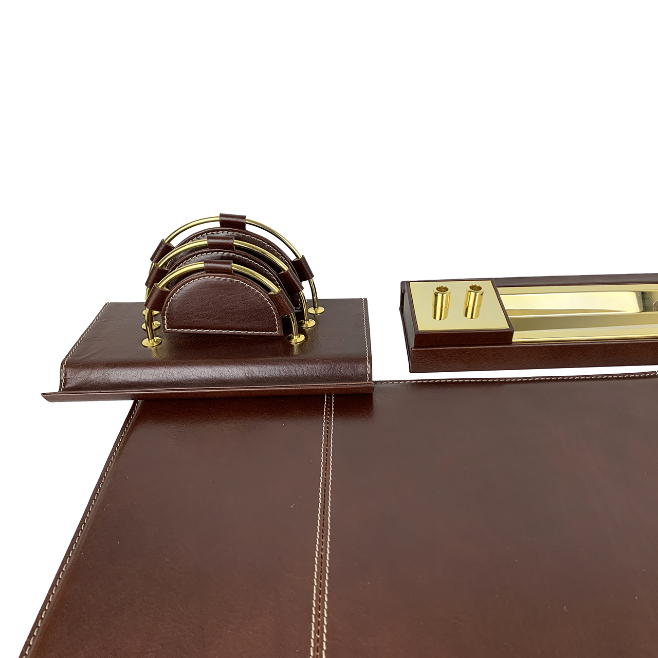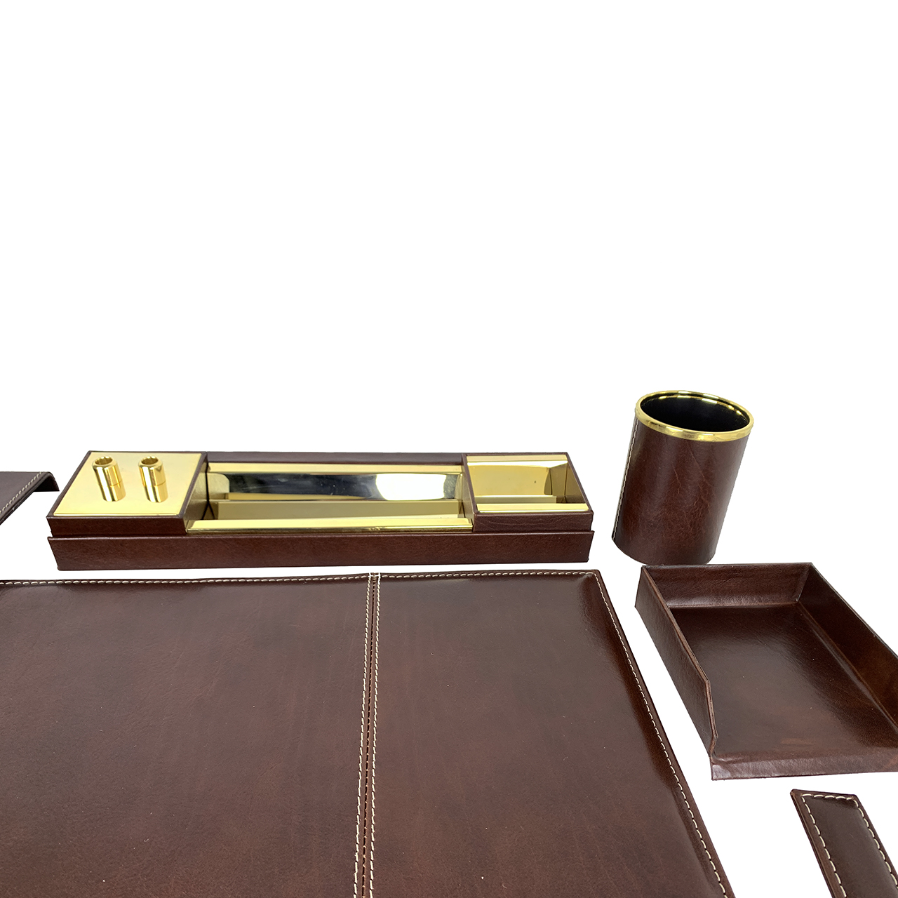 Stolový kancelársky set z pravej kože. Kožený kancelársky set z pravej Talianskej kože. Výroba a predaj kožených kancelárskych setov. Ponúkame Vám široký výber office setov z pravej kože. Elegantné kožené kancelárske sety. Objednávajte jednoducho a lacno cez náš internetový obchod. Naozajstný kancelársky set splňuje všetky kritéria skvele použiteľného produktu. Časti sa dajú kúpiť samostatne alebo ako kompletný set. Ponúkame široký sortiment rozličných produktov využiteľných ako na pracovisku tak aj v domácnosti. Kompletné luxusné kancelárske sety ktoré sú vo vašej kancelárii priam žiadúce.