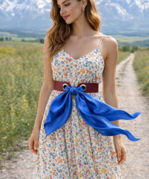 Kožené opasky viazané šatkou predstavujú originálny módny doplnok, ktorý spája pevnosť a kvalitu pravej kože s jemnosťou a eleganciou šatky. Ide o výrazný, no zároveň nadčasový prvok, ktorý zvýrazňuje pás a dodáva outfitu osobitý charakter. Kombinácia minimalistického koženého základu a dekoratívneho viazania vytvára harmonický kontrast medzi pevnou štruktúrou a hodvábnou látkou.