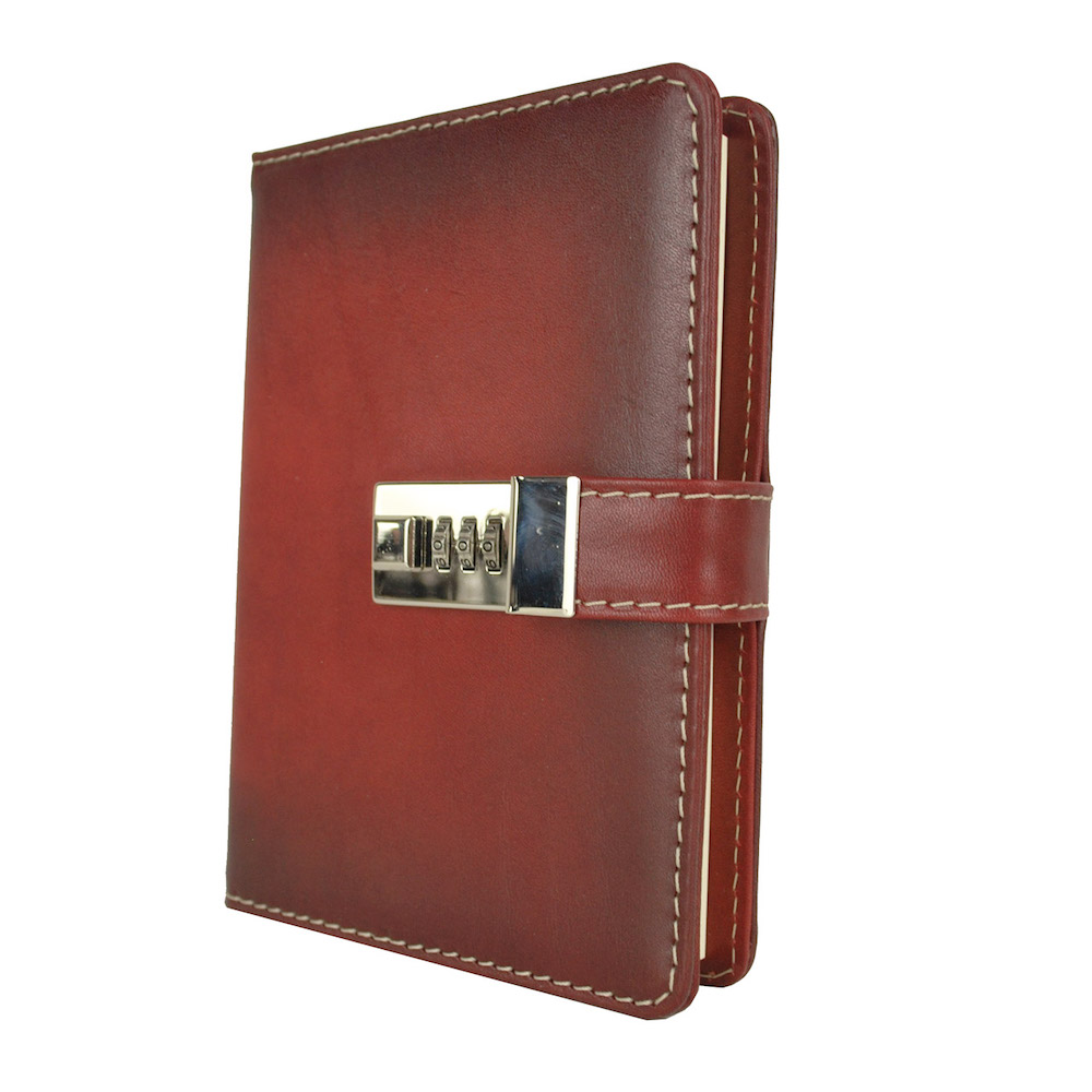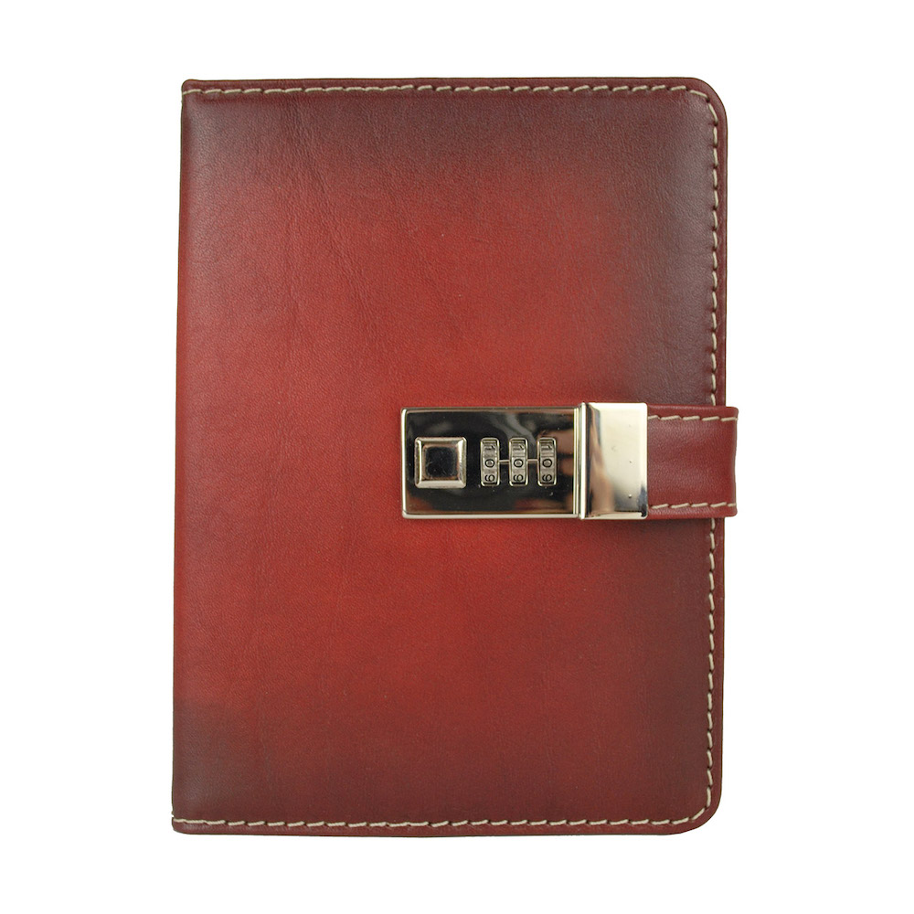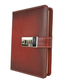 Veľký ručne tieňovaný zápisník z prírodnej kože na heslový zámok. Obal je vyrobený z pravej hovädzej kože. Koža je pevná a drží tvar. Kožený zápisník je vyrobený z prírodnej triesločinenej usne s ručným tampónovaním a následným tieňovaním krajov. Následné je ošetrený priehľadným lakom, ktorý chráni materiál pred bežným mechanickým poškodením a premočením. Zápisník s prírodnej kože s otváraním na heslový zámok je svojou veľkosťou vhodný do každej pánskej alebo dámskej tašky.